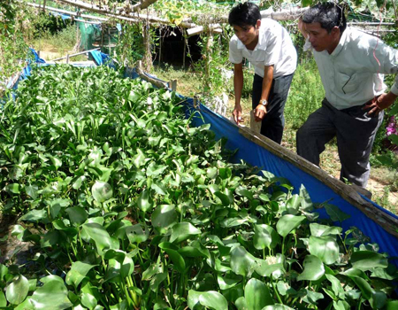 Anh thiết kế xây dựng luôn một mô hình khép kín 3 tầng. Tầng 1 là ao nuôi lươn, hồ nuôi trùn; tầng 2 gác tre trên ao, hồ để nuôi gà; tầng 3, anh làm giàn bằng trụ tre chắc chắn cho thiên lý và đậu rồng bò lên... Hiện thiên lý thì bao la, còn đậu rồng thì mấy chục bụi rồi. Tháng 8 đến tháng 2 năm sau là mùa của đậu rồng, cuối tháng giêng đến đầu tháng 9 là mùa của thiên lý. Hai loại cây này vừa che mát, vừa có bán quanh năm.