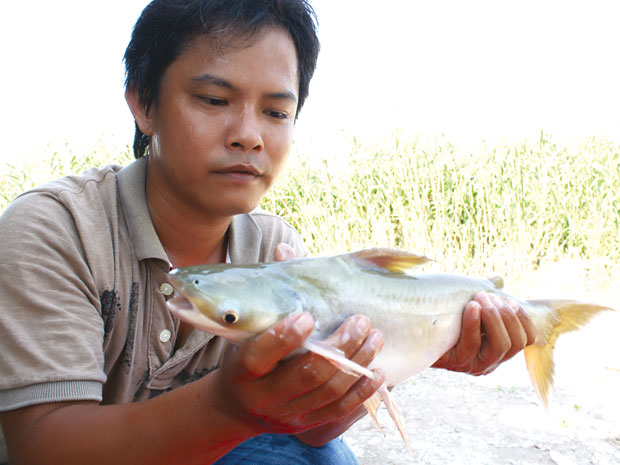 10/11/2013 5:57 PMNhìn từ xa, mảnh đất rộng mênh mông đầy lau sậy, cỏ dại nằm xen giữa cánh đồng nuôi tôm công nghiệp ở xã Phú Tân, huyện Tân Phú Đông, tỉnh Tiền Giang, không ít người phải luyến tiếc khi giá tôm đang ở mức rất cao như hiện tại. Khi đến gần, khu đất rộng khoảng 10ha này dù đã được xẻ mương thẳng tắp, nối thông với nhau, nhưng mặt nước cặp theo các bờ cỏ cây ngả rạp đã che kín, những khoảng trống mặt nước còn lại cũng yên lặng… Nhưng đó lại là nơi tạo cảnh tự nhiên để gây nuôi những loài cá da trơn
