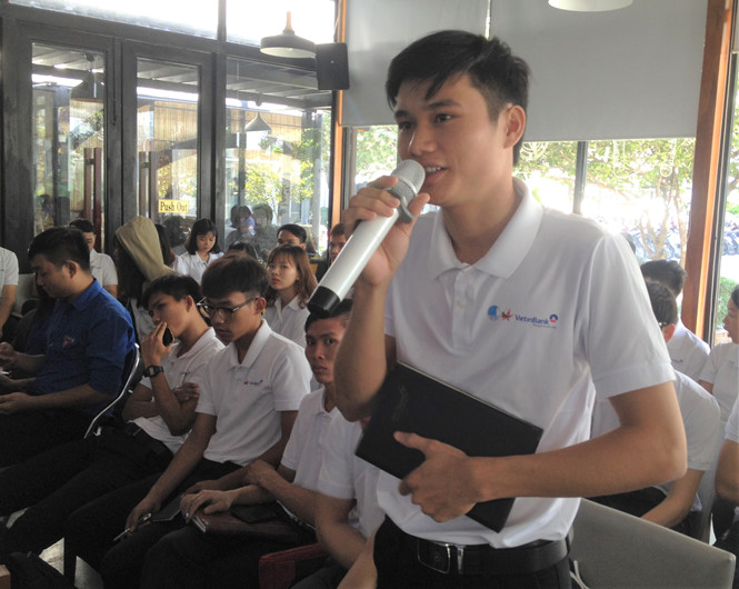 Nguyễn Thành Đạt, sinh viên năm 3, Trường ĐH Thủ Dầu Một (tỉnh Bình Dương) đặt câu hỏi. Ảnh: Lê Thanh