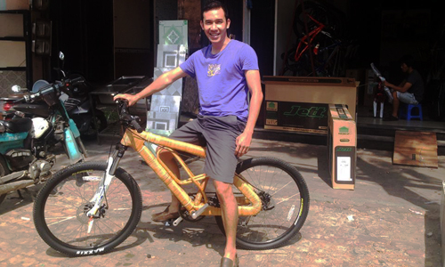 15/04/2014 8:57 AMÝ tưởng sản xuất xe đạp khung gỗ hình thành sau chuyến đạp xe xuyên Việt của Đỗ Bá Huy - chàng giám đốc từng nổi danh với sản phẩm chuột gỗ made in Vietnam.