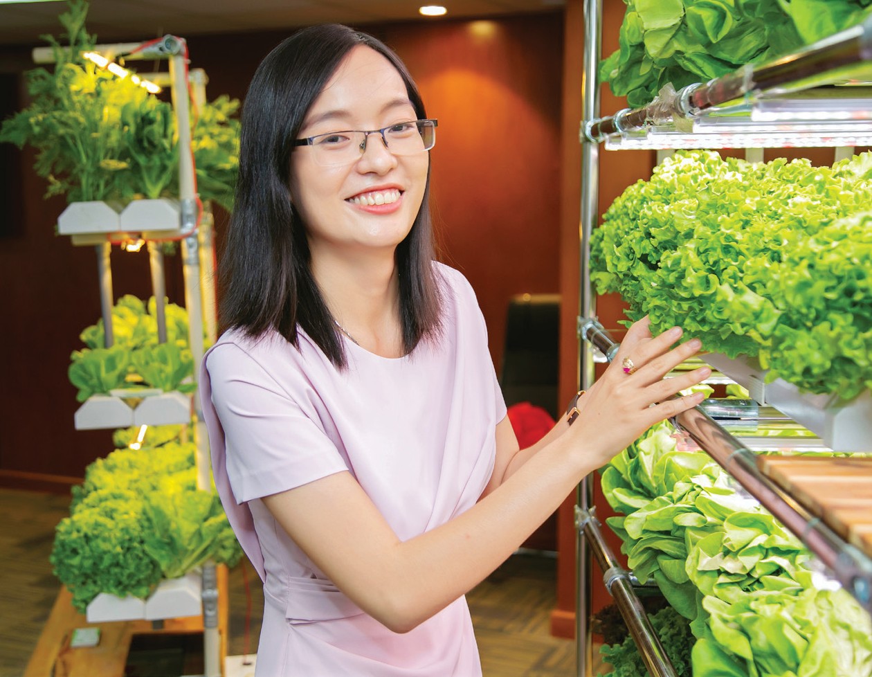 Bán rau sạch vừa tạm ổn, cô gái 9X này lại thực hiện mô hình kệ rau thông minh trong nhà với hệ thống tưới phun tự động. Kim Lê chia sẻ, trong hành trình thi công hệ thống rau sạch tại nhà, nhóm của cô nhận ra rằng, không phải gia đình nào cũng đủ sức duy trì “vườn rau” gia đình dù đã có hệ thống tưới phun tự động. Bởi rau còn phụ thuộc các yếu tố khác như: ánh sáng, dinh dưỡng, kỹ thuật canh tác…