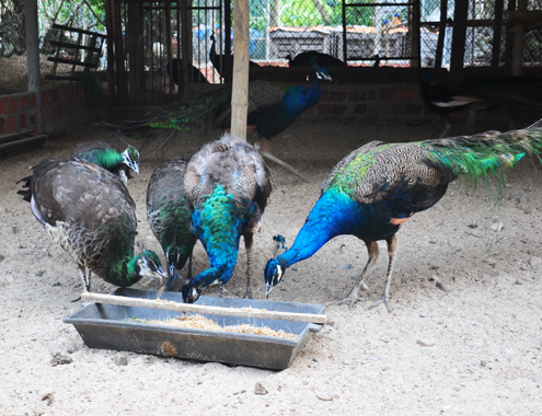 Từ một cặp công trống, mái giống mua từ Vườn Quốc gia Cúc Phương với giá 60 triệu đồng, sau hơn 2 năm ấp nở, gia đình Anh đã nhân giống thành công hàng chục cặp chim công. |