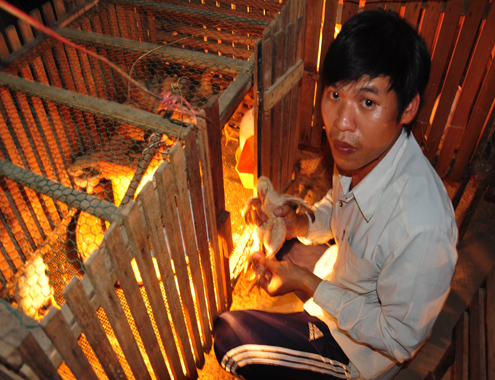 "Lúc mới đưa về do chưa thích nghi thời tiết, một con gà mái Đông Tảo ngã ra chết khiến hai vợ chồng lo lắng mất ăn, mất ngủ. Vượt qua khó khăn, chịu khó tìm tòi, học hỏi thêm kỹ thuật, vợ chồng tôi đầu tư thêm 100 triệu đồng xây dựng chuồng trại, làm nhà lưới tạo bóng mát cho đàn gà; đồng thời mua máy về thử nghiệm ấp trứng, nhân giống gà quý này", anh thổ lộ. Nhờ ấp nở giống gà Đông Tảo thành công, chàng kỹ sư trẻ đã có doanh thu khá từ bán gà thương phẩm và gà giống để mở rộng đầu tư thêm chim trĩ, công và vịt trời, phát triển thành trang trại chăn nuôi tổng hợp ở vườn nhà. |