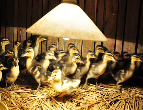 Khu vực sưởi ấm đàn vịt trời sau khi ấp nở. Để duy trì ổn định đầu ra cung ứng cho khách hàng, hiện Anh đã cung ứng con giống, hướng dẫn kỹ thuật, hợp tác với 15 hộ dân ở xã Nghĩa Hà cùng chăn nuô và bao tiêu sản phẩm cho họ. "Nhu cầu tiêu thụ gà Đông Tảo, chim công và vịt trời ở thị trường TP HCM, Hà Nội và Đà Nẵng rất lớn nên trang trại của tôi không lo bí đầu ra. Thương lái đến tận trang trại thu mua hoặc có thể đóng thùng gửi cho khách hàng bằng xe tải. Trung bình mỗi năm, trang trại chăn nuôi tổng hợp này thu lãi khoảng 200 triệu đồng", Anh nhẩm tính. |