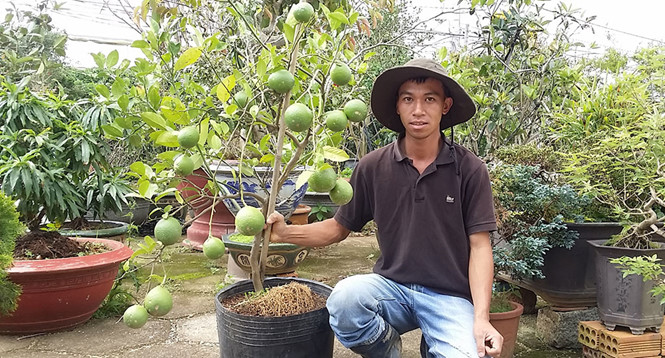 “Cây lớn nhanh, có nhiều sản phẩm nhưng khách hàng chưa quen biết nên bán khá chậm, sau đó chuyển sang sản xuất cây giống dược liệu nhưng thu nhập cũng không nhiều. Vừa làm vừa tìm hướng đi mới, cuối cùng mình nghĩ ra “chiêu” tìm kiếm, sưu tầm những cây dược liệu cho trái ăn được và có lợi cho sức khỏe nhưng trồng theo hướng cây kiểng, cây bonsai để kinh doanh”, Bình kể lại.