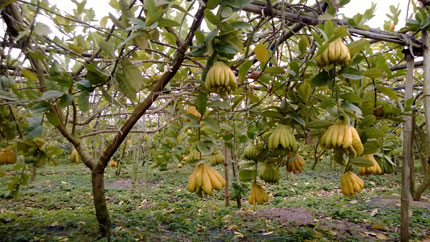 Mới theo nghề nhưng vườn Phật thủ của anh Nguyễn Đức đã nức tiếng khắp vùng bởi cách chăm sóc đặc biệt để có được những quả Phật thủ vừa to, vừa đẹp. Thậm chí gia đình anh còn lập trang web để giới thiệu sản phẩm. “Tiêu chuẩn của người dùng là cứ quả Phật thủ nào nhiều ngón, thuôn, đều thì được giá”, anh Đức giới thiệu. Trong vườn nhà anh, loại quả được chào bán với giá trên 1,5 triệu đồng không thể đếm hết được. Bãi trồng Phật thủ của gia đình anh Đức cách xa nhà chừng 2km. Diện tích đất nhà mình không đủ, gia đình anh còn thuê đất của người xã bên cạnh để trồng. Bình quân mỗi năm, với 1 hecta Phật thủ, anh Đức thu được 700 triệu đến 1 tỷ đồng. Trừ tất cả chi phí thuê đất, phân bón, làm giàn, thuốc trừ sâu, nhân công… anh còn lãi hơn nửa tỷ đồng.