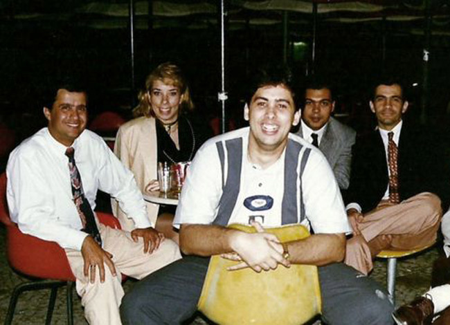 Augusto chụp hình cùng các cộng sự năm 1995 khi trung tâm tiếng Anh Wise Up ra đời. Ảnh: BBC.