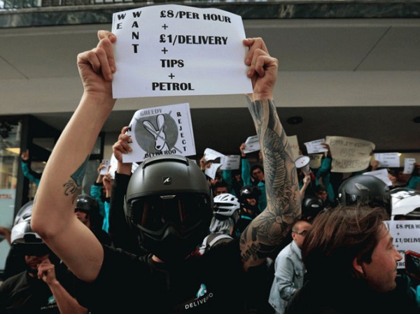 Deliveroo rơi vào những cuộc tranh luận về tiền lương và điều kiện làm việc cho những lao động này trong nền kinh tế tự do với việc làm ngắn hạn hiện nay (Gig economy).