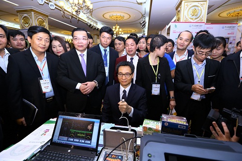 Phó thủ tướng Vũ Đức Đam tham quan các gian hàng tại Techfest 2017. Ảnh: M.H