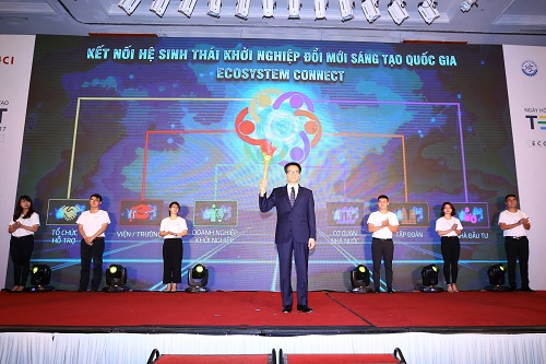 Phó thủ tướng Vũ Đức Đam thắp ngọn đuốc kết nối hành trình hệ sinh thái khởi nghiệp đổi mới sáng tạo. Ảnh: M.H