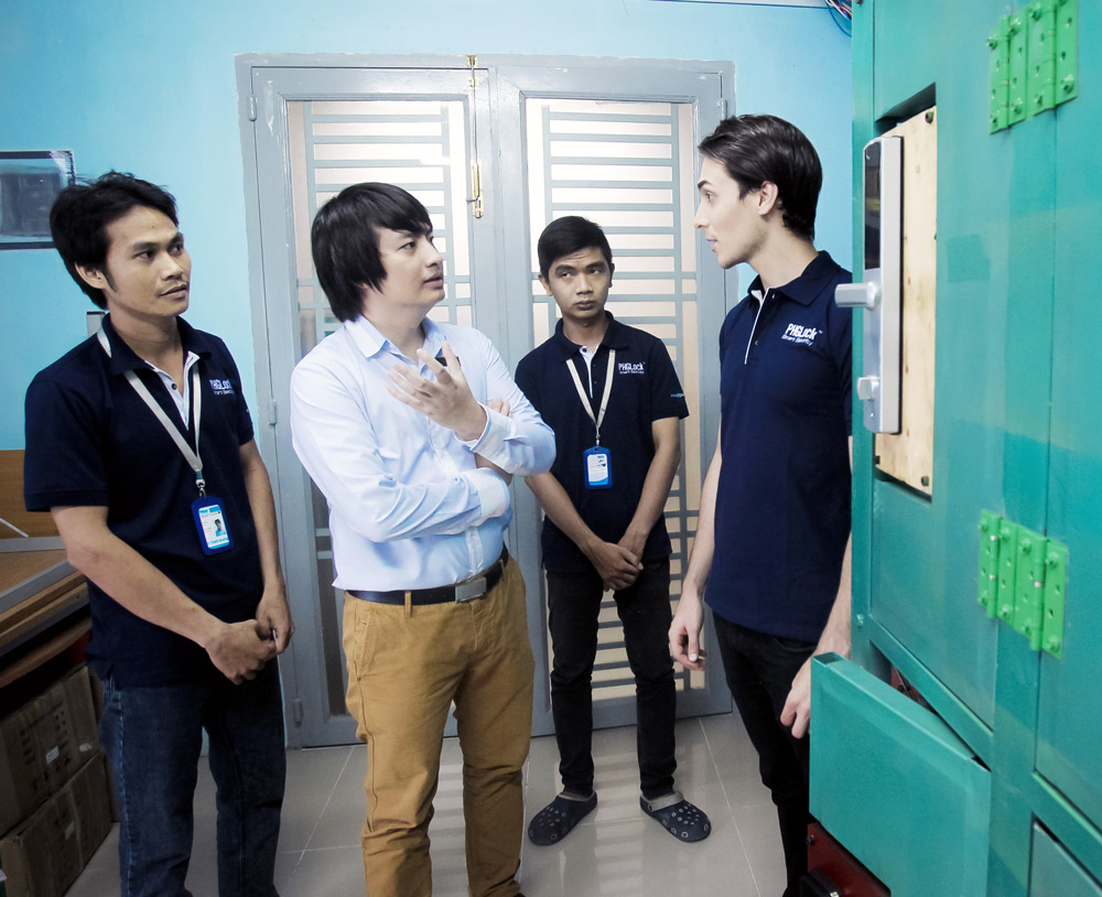 Hoàng Tuấn Anh và các chuyên viên kỹ thuật của PHGLock tại TPHCM.