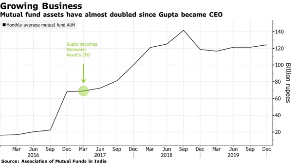 Bà Gupta mới ra mắt quỹ giao dịch trao đổi đầu tiên của Ấn Độ cho trái phiếu doanh nghiệp trong tháng 12/2019. Đây là một phần trong kế hoạch đầy tham vọng của bà nhằm nâng cao lượng tài sản của khách hàng tại Edelweiss Asset Management, từ khoảng 4 tỷ USD lên hơn 40 tỷ USD vào năm 2025.