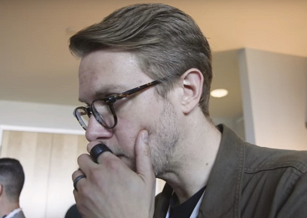 Chiếc nhẫn còn được tích hợp loa, nhưng âm lượng khá nhỏ. Theo mô tả của The Verge, để sử dụng chiếc nhẫn này bạn sẽ phải đưa nó lên sát miệng, thì thầm yêu cầu của mình cho Alexa. Chiếc nhẫn sẽ kết nối với điện thoại qua Bluetooth, và phản hồi của Alexa được phát qua loa. Ảnh: The Verge.