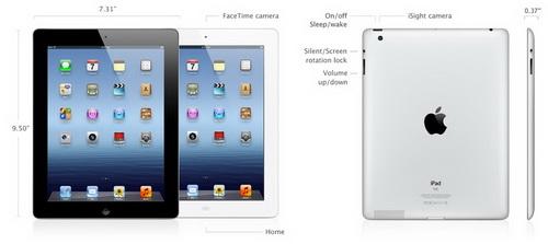 | iPad mới có cấu trúc các nút vật lý và kích cỡ tương tự iPad 2 |