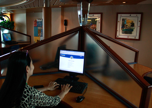 Khu intenet trên du thuyền được bày trí đẹp mắt, có buồng ngăn.