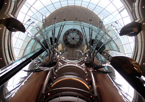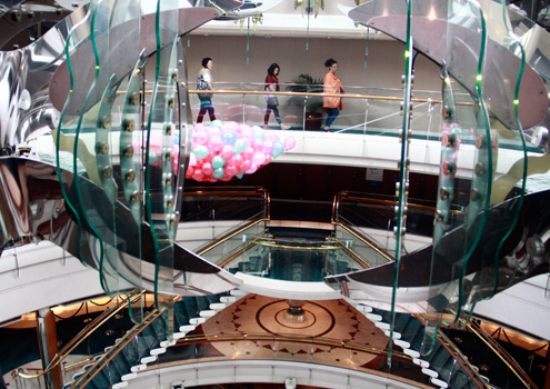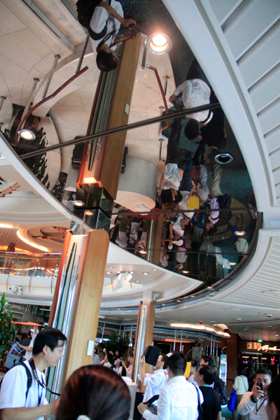 Điểm nhấn của du thuyền 5 sao này là hệ thống thang máy lên xuống các tầng được trang trí như một cung điện tráng lệ tại khu vực sảnh lễ tân, giúp kết nối các tầng của du thuyền.