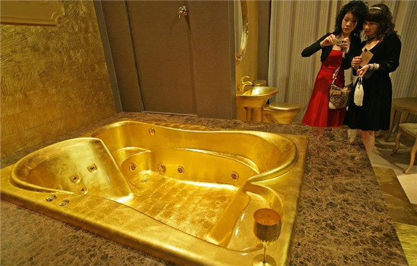 Bồn tắm dát vàng tại một sự kiện tại Thượng Hải vào ngày 28/4/2006.