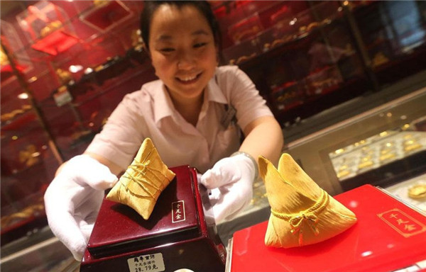 Zongzi - Bánh lá của người Trung Quốc thường hay làm vào dịp Tết Đoan Ngọ hoặc là Tết âm lịch được dát vàng và bày bán tại một cửa hàng Bắc Kinh vào ngày 25/5/2013.