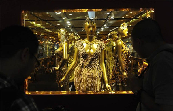 16 bộ váy dát vàng trưng bày tại Bắc Kinh vào ngày 29/6/2011.