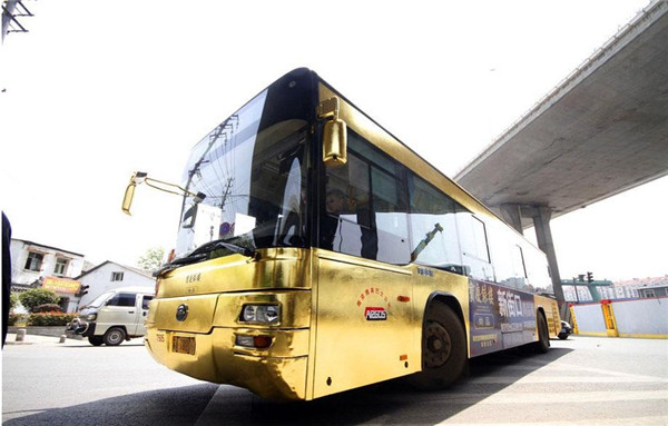 Một chiếc xe buýt mạ vàng ở Nam Kinh, Tỉnh Giang Tô vào ngày 25/4/2011.