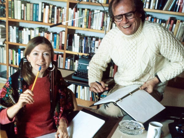 Nhà văn Joan Didion và tiểu thuyết gia John Gregory Dunne thường sáng tác cùng nhau tại thư viện trong căn nhà của họ ở Malibu (California).