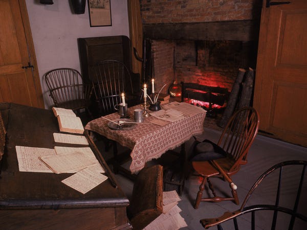 Cựu Tổng thống Mỹ John Adams (1735-1826) tận dụng nhà bếp làm văn phòng luật sư trong trang trại ở Braintree (nay là Quincy, Massachusetts). Ông từng là phó tổng thống đầu tiên của Mỹ và sau đó trở thành tổng thống Mỹ thứ hai, giữ chức vụ từ năm 1797 đến năm 1801.