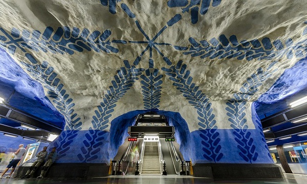 Nhà ga T-Centralen ở Stockholm, Thụy Điển là nhà ga dưới lòng đất đầu tiên ở thành phố này có trần được "hô biến" thành tác phẩm nghệ thuật.
