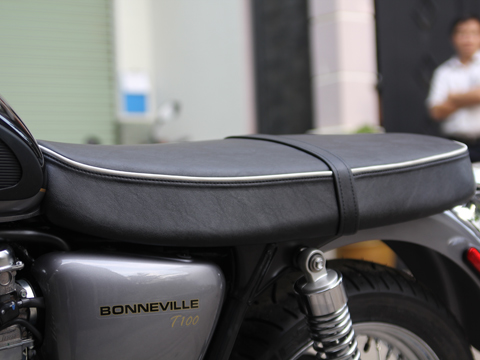 Triumph Bonneville T100 dài 2.115 mm, rộng 790 mm và cao 1.130 mm, với kiểu dáng cổ điển của hãng xe Anh quốc. Tư thế ngồi khá thoải mái, cụm tay lái và các nút bấm điều khiển khá đơn giản.