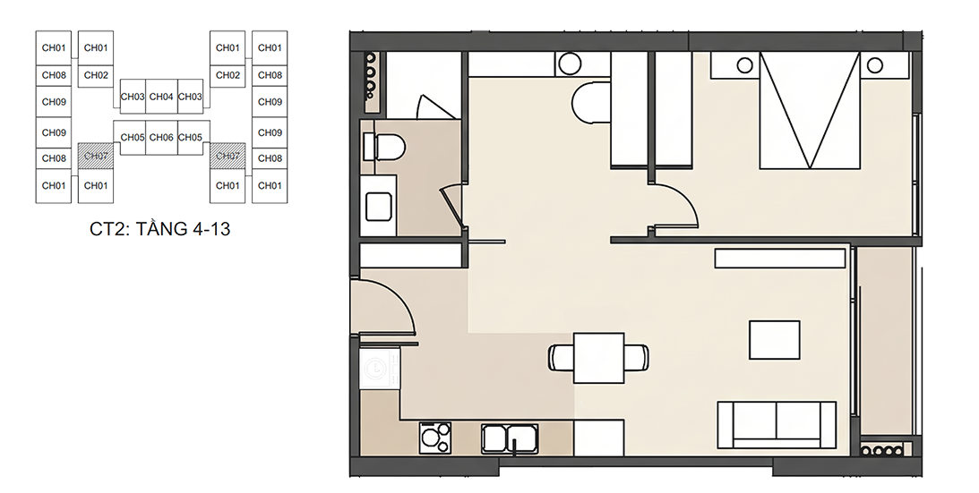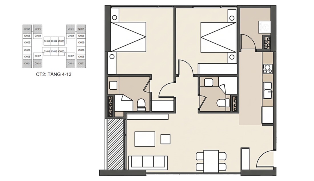 | Quy mô xây dựng | 2 tháp: CT1 (1 hầm 21 tầng nổi) CT2 (2 hầm 19 tầng nổi) |