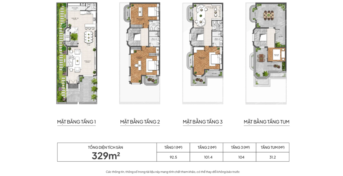 Tổng diện tích sàn: 329m2