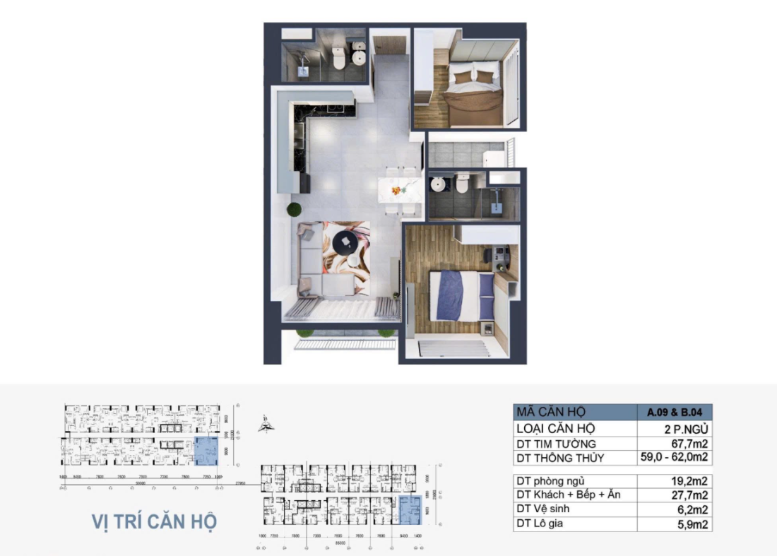 Diện tích: 64,4-67,7m2