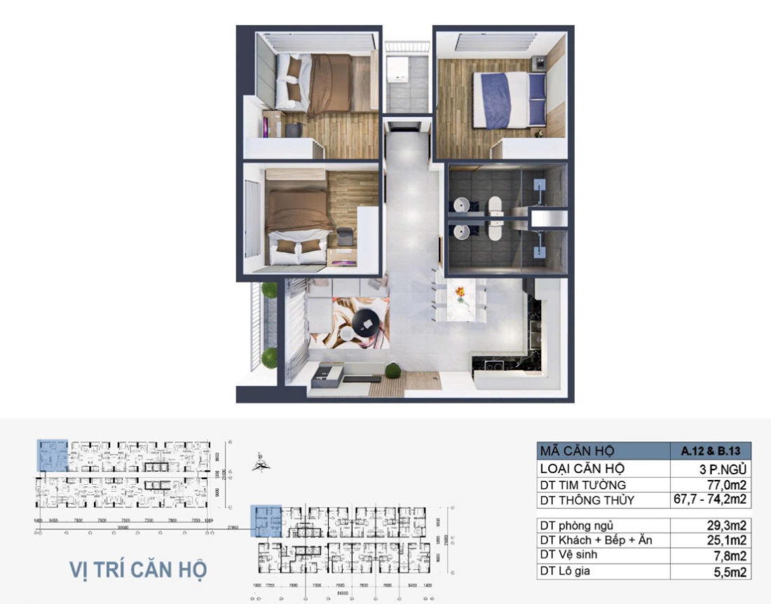 Diện tích: 77m2