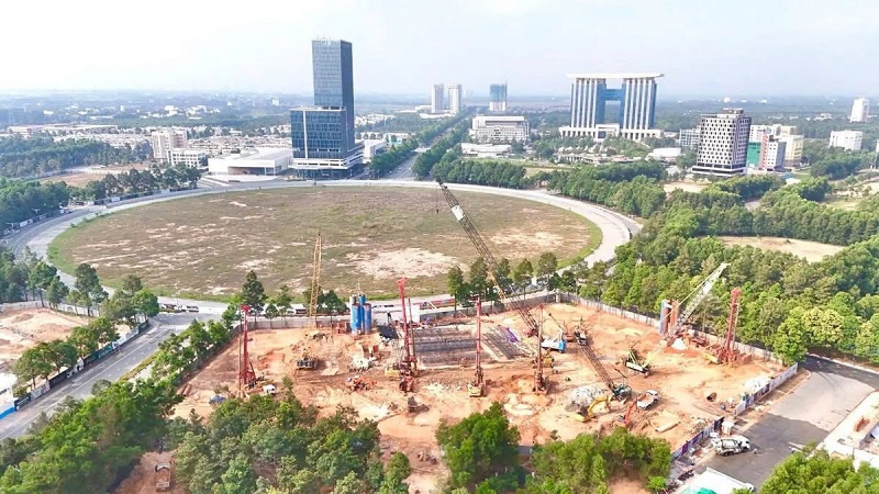 Dự án chính thức được khởi công ngày 22/04/2026. Hiện công trường đã được quây tôn hoàn chỉnh, một số lượng lớn máy khoan cọc nhồi, cẩu tháp và thiết bị cơ giới vẫn đang hoạt động để chuẩn bị cho giai đoạn đổ bê tông.