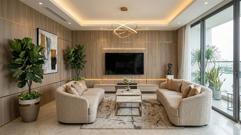 Phối cảnh phòng khách tại Nam Mekong Grand Plaza