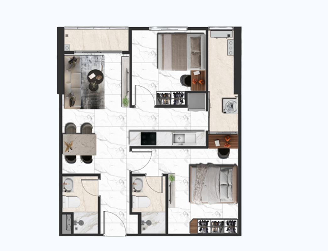 Layout căn hộ 2 phòng ngủ
