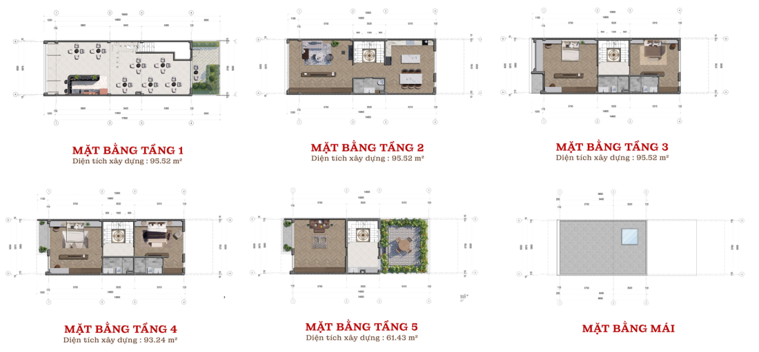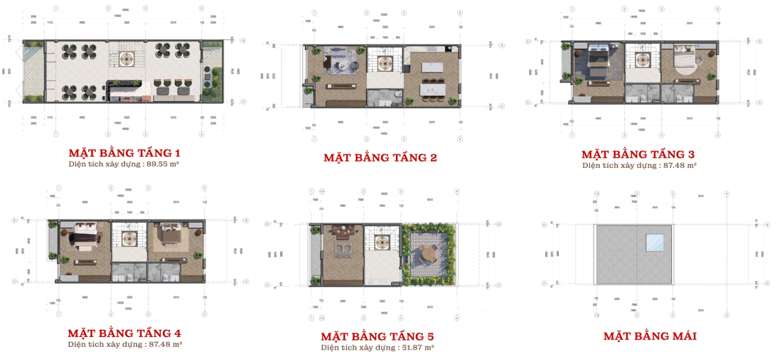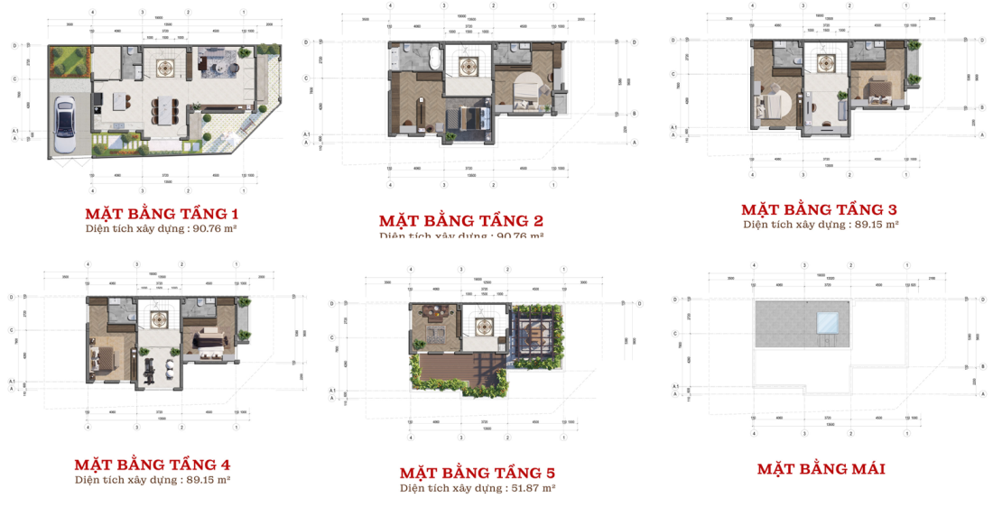 Tổng diện tích sàn xây dựng : 487,6-589m2