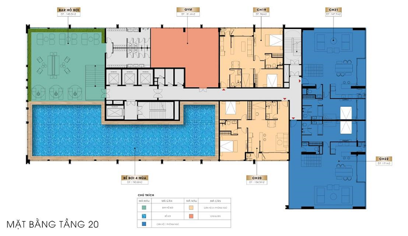 - Tầng 20: Hồ bơi