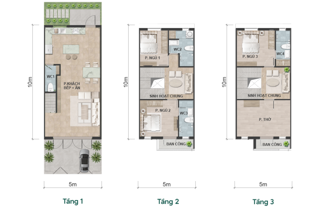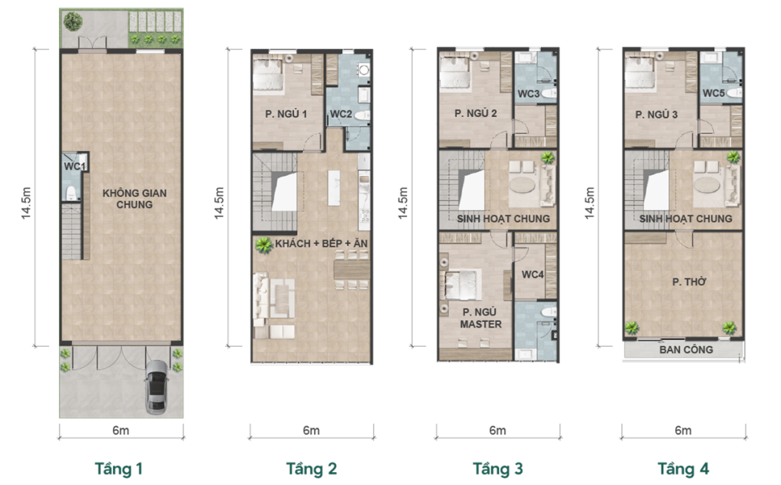 Tổng diện tích sàn: 156,8-173,36m2