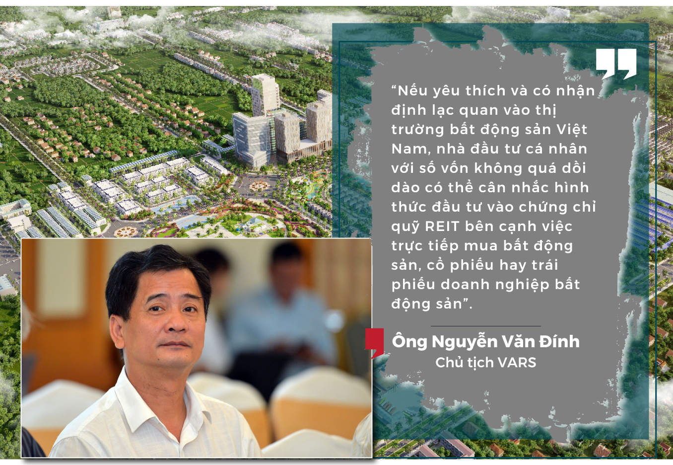 Ông Nguyễn Văn Đính, Chủ tịch VARS, cho rằng thay vì mua một căn nhà, đầu tư vào một shophouse, condotel, đất nền..., nhà đầu tư có thể mua chứng chỉ quỹ từ các REIT và thu lợi nhuận từ kinh nghiệm đầu tư của những nhà quản lý quỹ chuyên nghiệp.
