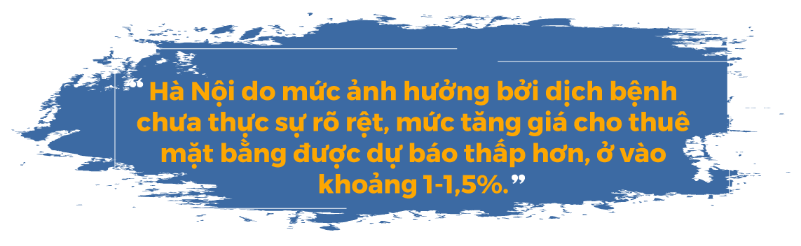 Hà Nội do mức ảnh hưởng bởi dịch bệnh chưa thực sự rõ rệt, mức tăng giá cho thuê mặt bằng được dự báo thấp hơn, ở vào khoảng 1-1,5%.