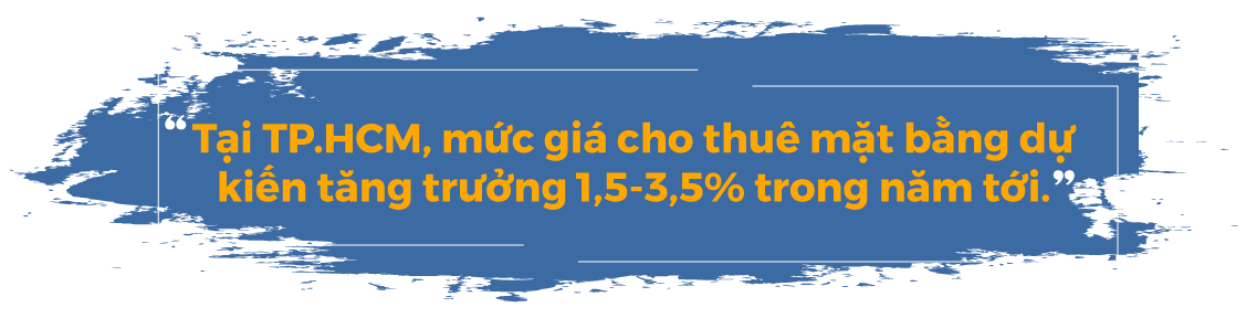 Tại TP.HCM, mức giá cho thuê mặt bằng dự kiến tăng trưởng 1,5-3,5% trong năm tới.