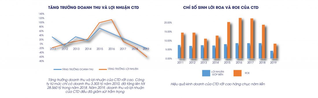 Ngay giai đoạn khó khăn nhất của nền kinh tế Việt Nam năm 2008 đến 2013, CTD vẫn có mức tăng trưởng doanh thu và lợi nhuận rất tốt. Trong suốt giai đoạn từ năm 2010 đến 2018 (trước khi sa sút 2019), tăng trưởng doanh thu đạt 40%, lợi nhuận gần 30%. Đây là một kết quả kinh doanh hết sức khả quan và là một kỳ tích vô cùng ấn tượng.