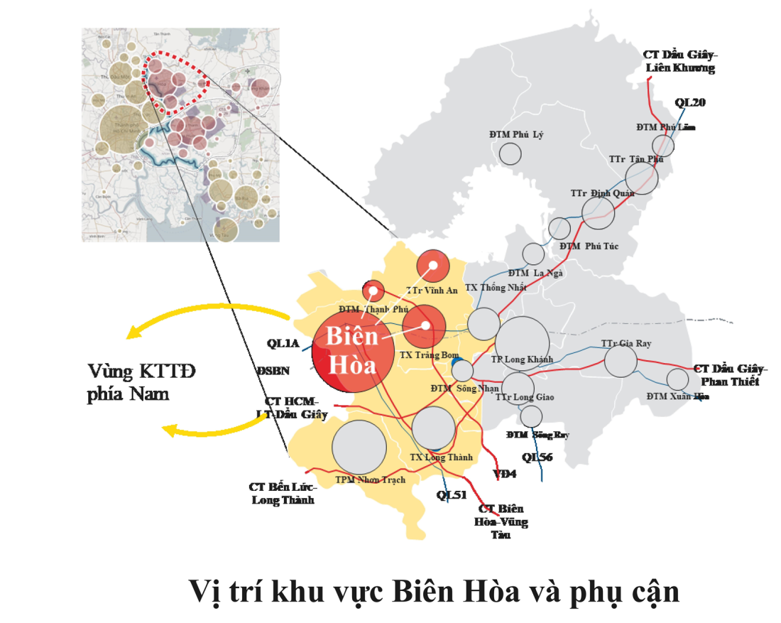 Biên Hòa – Đô thị lõi: Là trung tâm công nghiệp và dịch vụ hàng đầu của Đồng Nai, Biên Hòa sở hữu hạ tầng phát triển đồng bộ với các tuyến quốc lộ, đường sắt và lợi thế từ dòng sông Đồng Nai. Thành phố này tập trung nhiều khu công nghiệp lớn như Amata, Biên Hòa 1 và 2, tạo nguồn cầu ổn định cho thị trường bất động sản. Tại đây, phân khúc căn hộ và nhà phố đang phát triển mạnh mẽ. Tuy nhiên, quỹ đất hạn chế đang trở thành thách thức lớn, đòi hỏi sự tối ưu hóa trong quy hoạch để đáp ứng nhu cầu mở rộng đô thị.