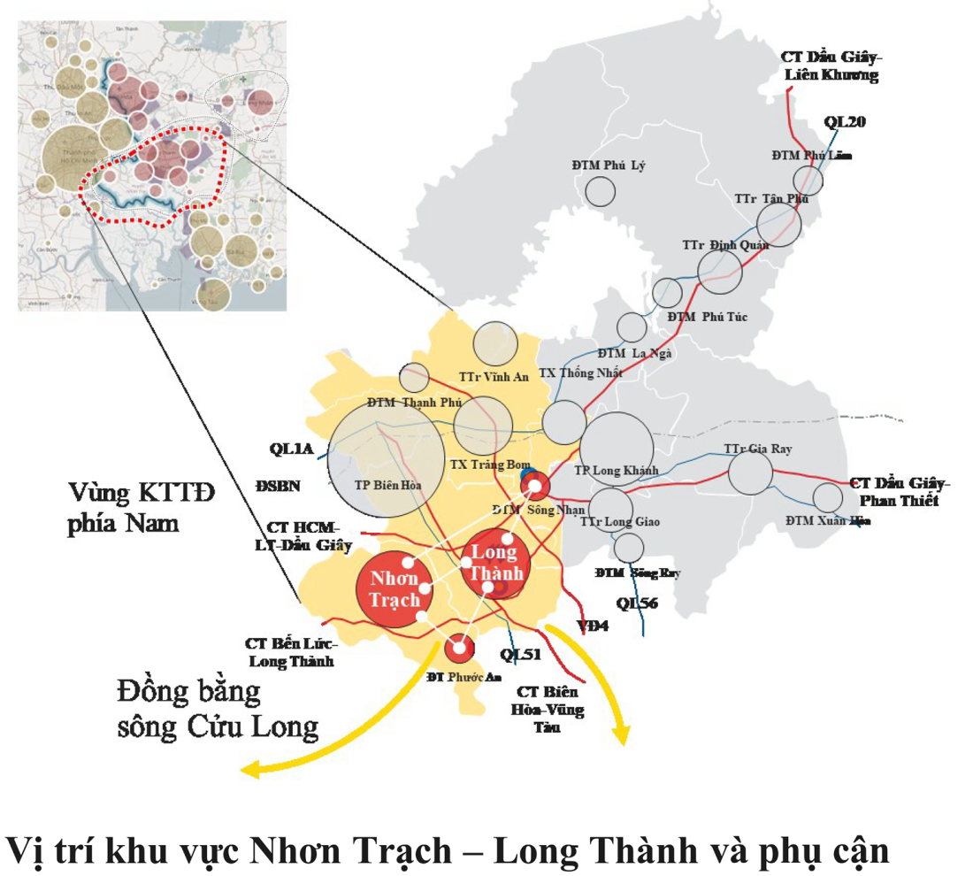 Long Thành – Đô thị sân bay: Với dự án Sân bay Quốc tế Long Thành dự kiến hoàn thành giai đoạn 1 vào năm 2026, Long Thành đang được định hình để trở thành trung tâm hàng không lớn nhất Đông Nam Á. Sân bay này không chỉ là động lực thúc đẩy kinh tế, mà còn tạo bước ngoặt lớn cho thị trường bất động sản khu vực. Long Thành được kết nối thuận tiện qua các tuyến cao tốc TP.HCM - Long Thành - Dầu Giây và Biên Hòa - Vũng Tàu, giúp phát triển thành một đô thị sân bay hiện đại. Khu vực này dự kiến sẽ thu hút mạnh mẽ dòng vốn đầu tư vào các dự án khu đô thị, thương mại và công nghiệp phụ trợ, với giá trị bất động sản tăng trưởng vượt bậc trong thời gian tới.