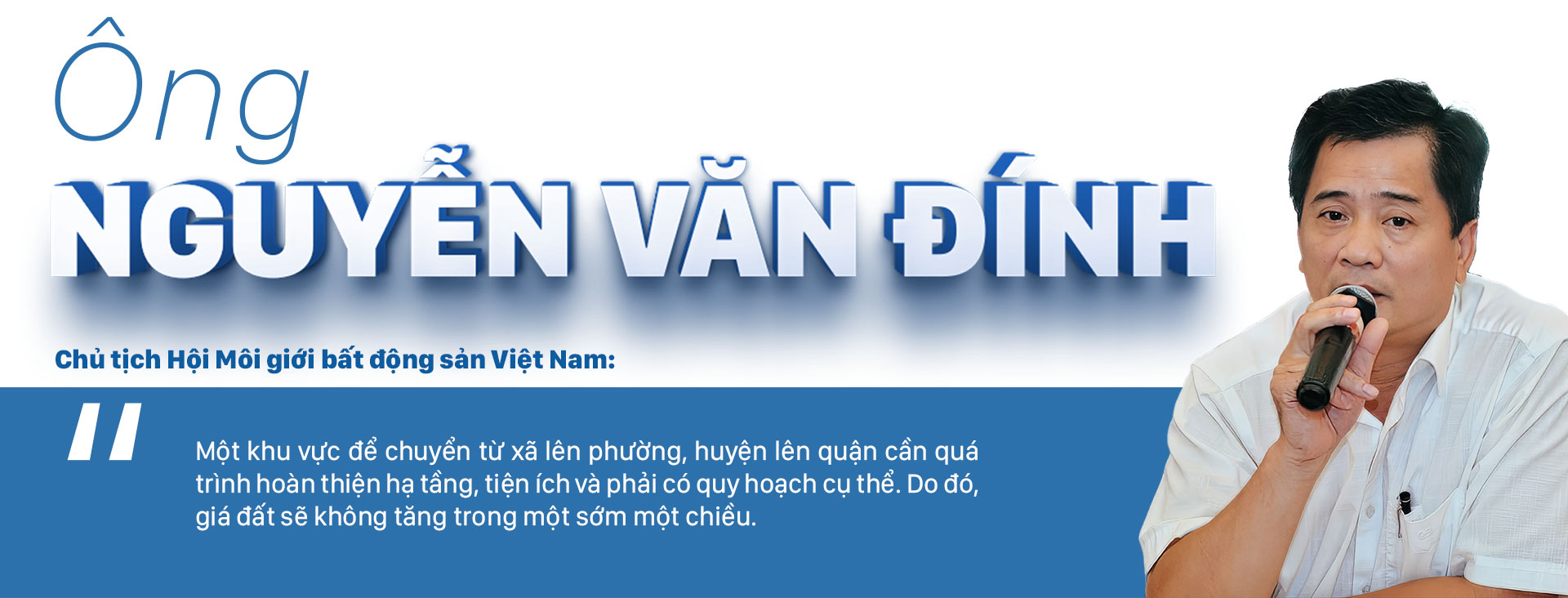 Một khu vực để chuyển từ xã lên phường, huyện lên quận cần quá trình hoàn thiện hạ tầng, tiện ích và phải có quy hoạch cụ thể. Do đó, giá đất sẽ không tăng trong một sớm một chiều.