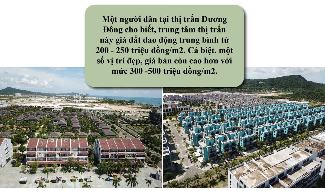 Hiện nay, dù dịch bệnh covid – 19 đang khiến thị trường chững lại song ghi nhận thực tế, nó không tác động quá nhiều đến giá bất động sản ở Phú Quốc. Một người dân tại thị trấn Dương Đông cho biết, trung tâm thị trấn này giá đất dao động trung bình từ 200 - 250 triệu đồng/m2. Cá biệt, một số vị trí đẹp, giá bán còn cao hơn với mức 300 -500 triệu đồng/m2.