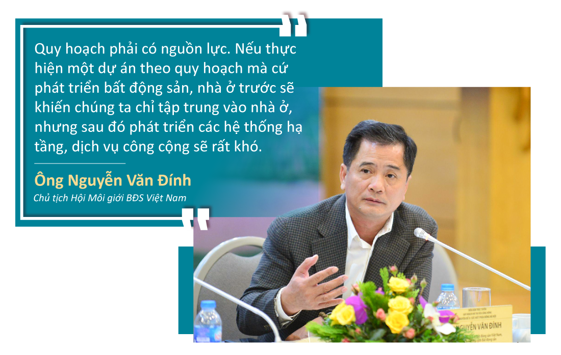 Thứ nhất, quy hoạch phải có nguồn lực. Nếu thực hiện một dự án theo quy hoạch mà cứ phát triển bất động sản, nhà ở trước sẽ khiến chúng ta chỉ tập trung vào nhà ở, đó phát triển các hệ thống hạ tầng, dịch vụ công cộng sẽ rất khó.