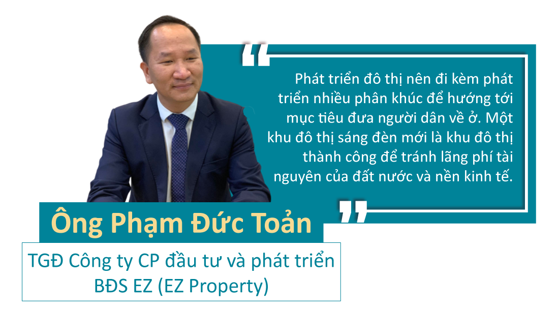 Ông Phạm Đức Toản, Tổng giám đốc Công ty cổ phần đầu tư và phát triển bất động sản EZ (EZ Property), cho rằng việc quy hoạch phát triển đô thị là tất yếu nhưng cần tránh lãng phí, đầu tư ồ ạt mà không có sự kiểm soát.