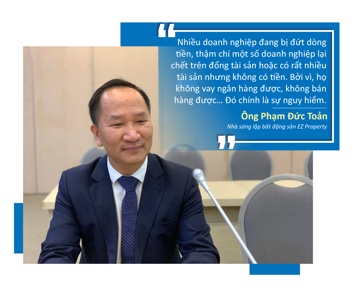 “Nhiều doanh nghiệp đang bị đứt dòng tiền, thậm chí một số doanh nghiệp lại chết trên đống tài sản hoặc có rất nhiều tài sản nhưng không có tiền. Bởi vì, họ không vay ngân hàng được, không bán hàng được… Đó chính là sự nguy hiểm”, ông Toản nhấn mạnh.