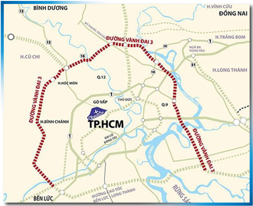 Cụ thể, Vành đai 3 TP.HCM có tổng chiều dài 76,34km đi qua TP.HCM, Bình Dương, Đồng Nai và Long An, tổng vốn đầu tư hơn 75.000 tỉ đồng.